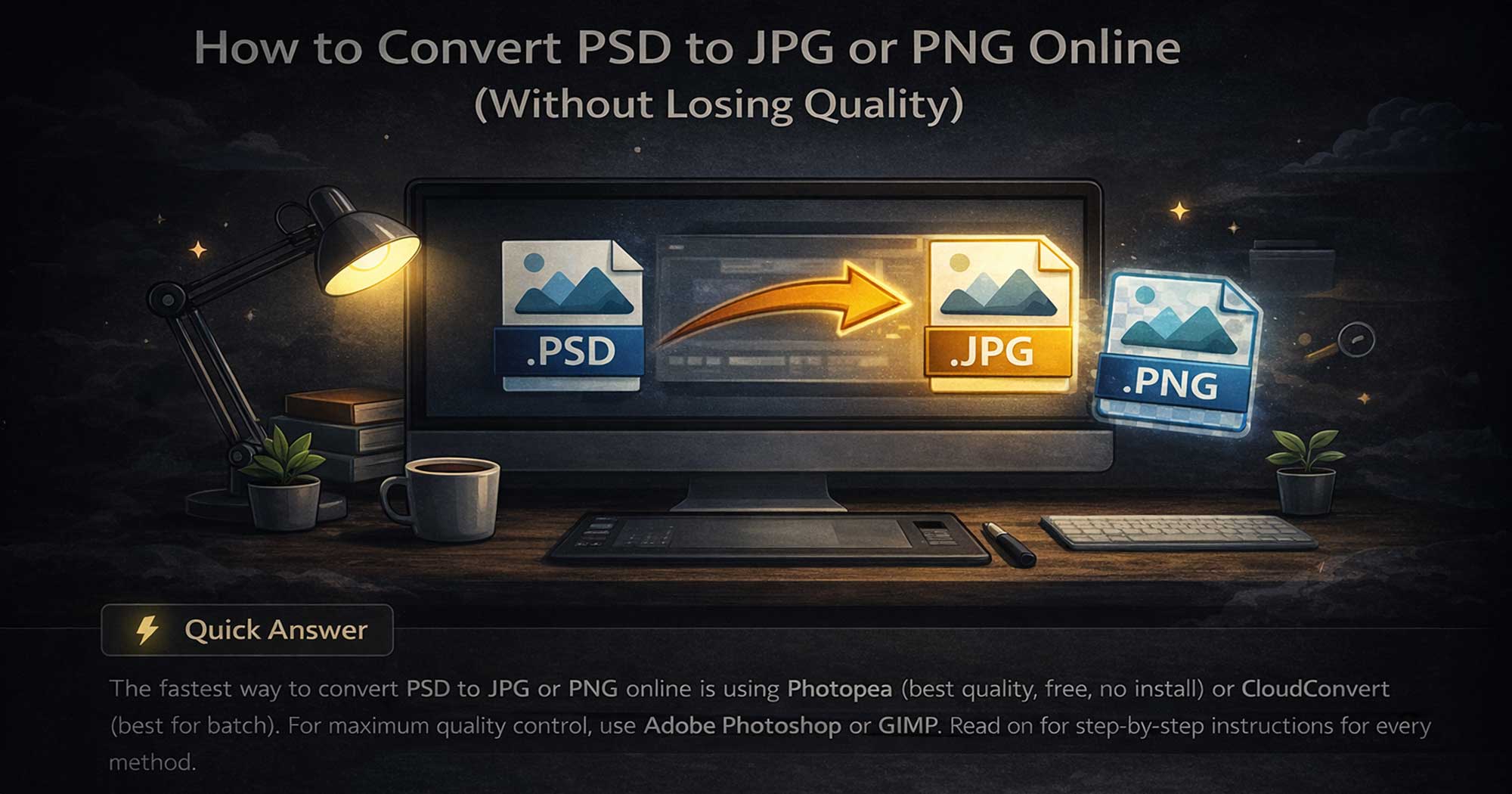 This is one of the most common problems designers and clients face — and it's easier to solve than you think. In this guide, we'll show you exactly how to convert PSD files to JPG or PNG without losing quality, without installing expensive software, and without any technical knowledge. Whether you are using Photopea, CloudConvert, or GIMP, we will teach you exactly how to convert them and explain what the conversion process does to your image layers.