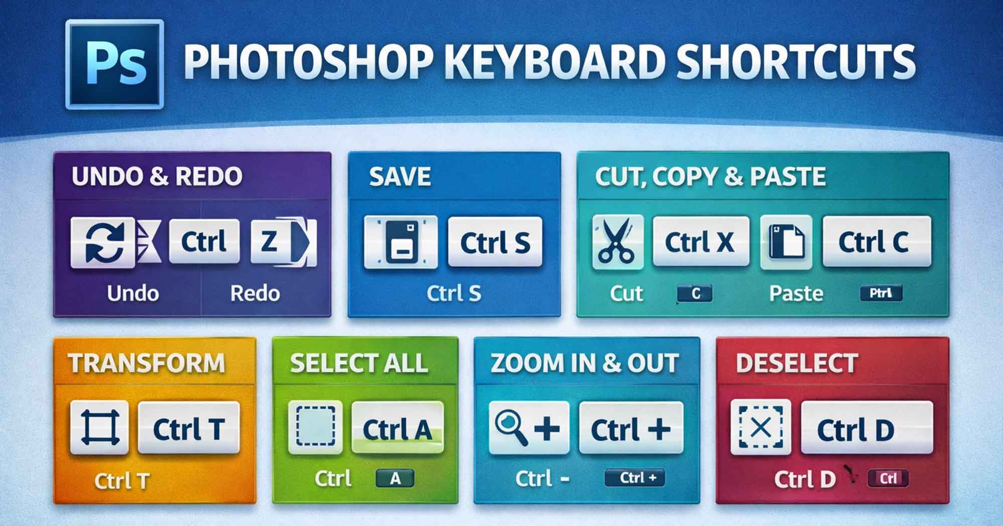 Keyboard shortcuts are the fastest way to speed up your Photoshop workflow. Instead of clicking through menus, a single key press gets the job done in milliseconds. This guide covers every important Photoshop shortcut — organized by category — plus an Instant Shortcut Finder tool so you never have to scroll just to find one shortcut.