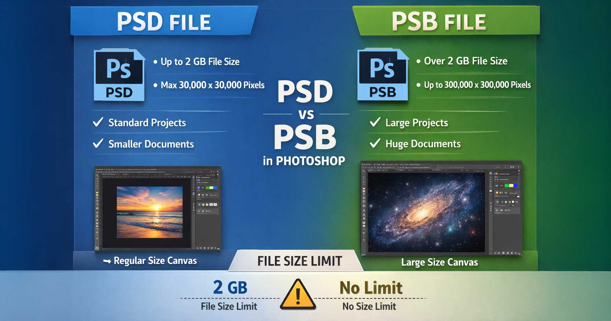 | Feature | PSD (Standard) | PSB (Photoshop Big) |